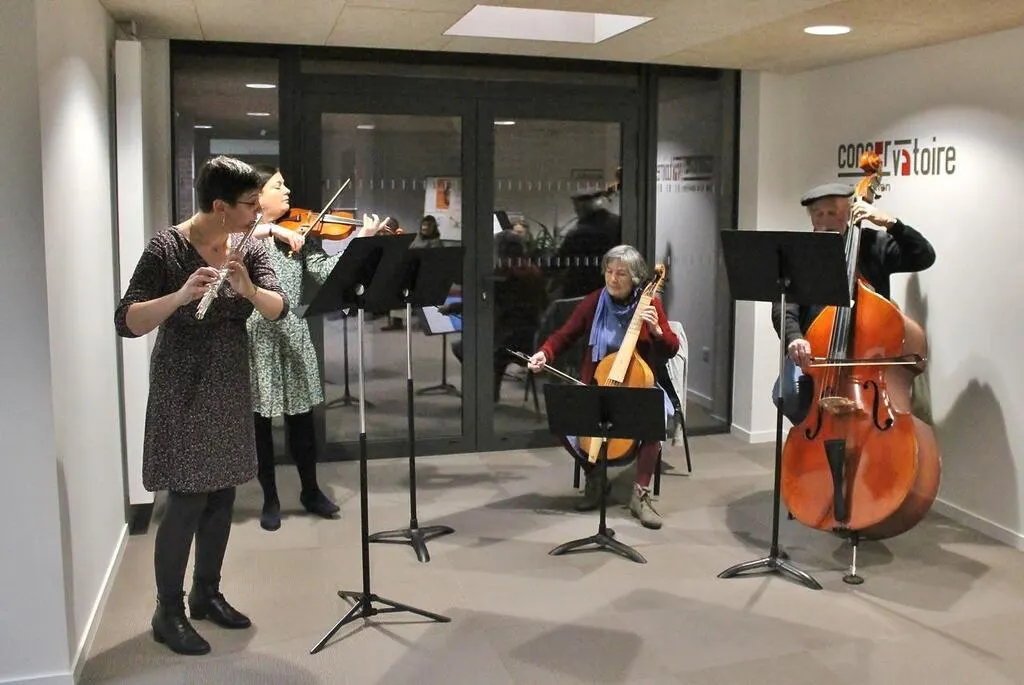 À l’entrée du conservatoire Hélène-Affichard, des musiciens ont investi les lieux. Ouest-France