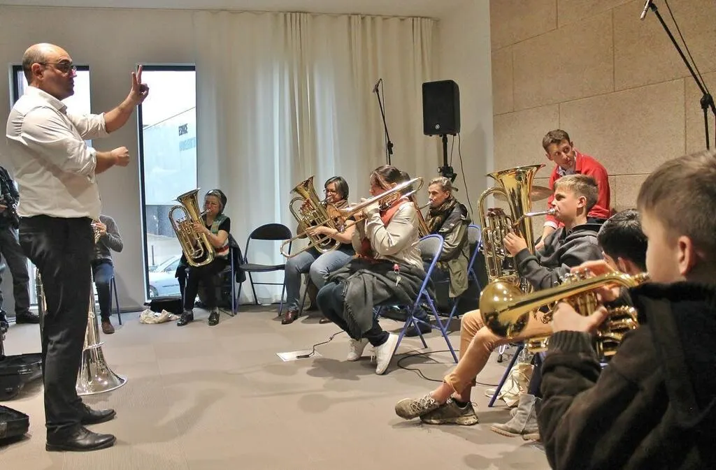 Autour du professeur de tuba Mathieu Chalange, on pouvait s’essayer aux cuivres pour la première fois pendant l’inauguration : bienvenue dans « l’orchestre éphémère » du conservatoire Hélène-Affichard. Ouest-France