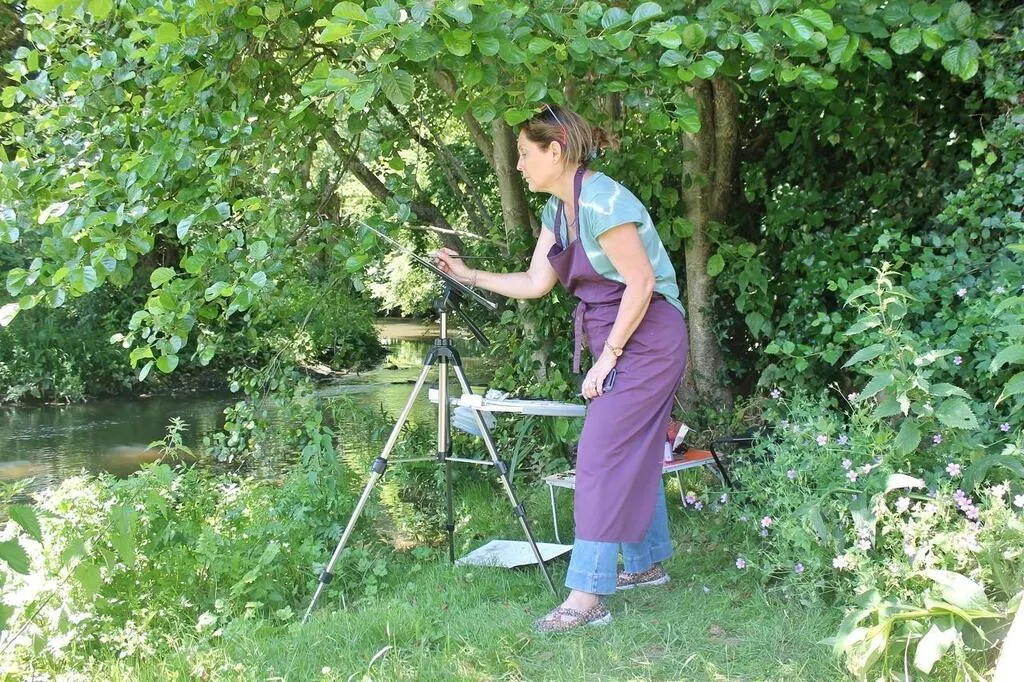 C’était en revanche une première pour Patricia. Cette institutrice de 58 ans a laissé son compagnon et sa fille à Paris, où ils vivent, pour s’offrir cette parenthèse artistique. « Je vais peut-être subir les embouteillages sur la route du retour mais je passe un excellent week-end. Je suis en pleine méditation », sourit-elle, au bord de la Vègre, nichée à l’ombre de la végétation, avec les bâtisses de la place du Guesclin en guise d’inspiration.