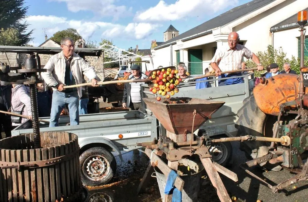 Bernard Deniau (à droite) avait sorti son vieux pressoir pour l’occasion. Ouest-France
