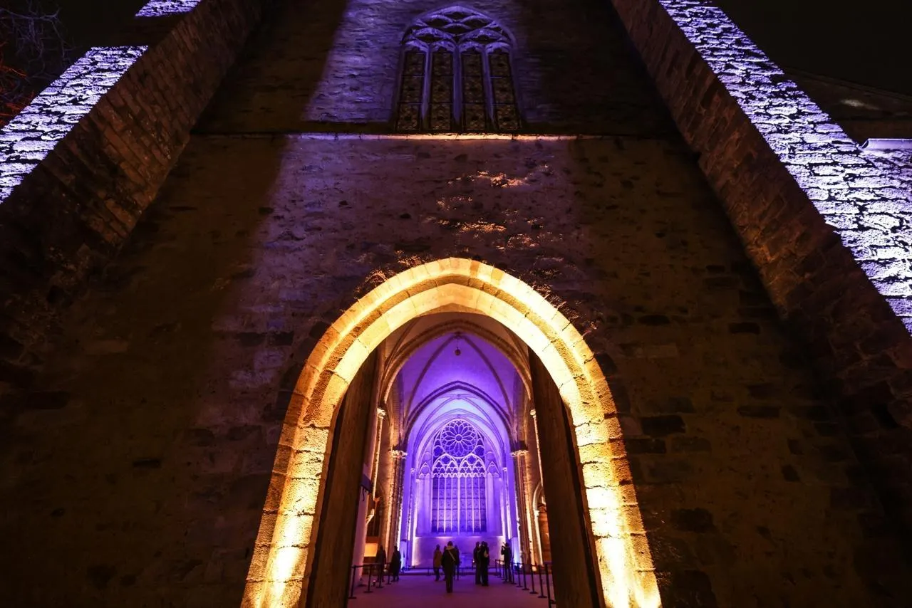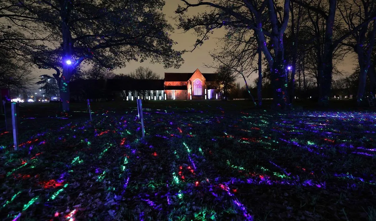 L’abbaye depuis le parc, au fil d’un parcours lumineux et sonore d’un kilomètre. © Ouest-France