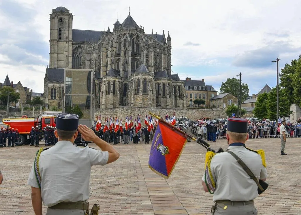 Plusieurs centaines de personnes ont assisté ce mercredi 13 juillet à la cérémonie militaire sur la place des Jacobins au Mans.
