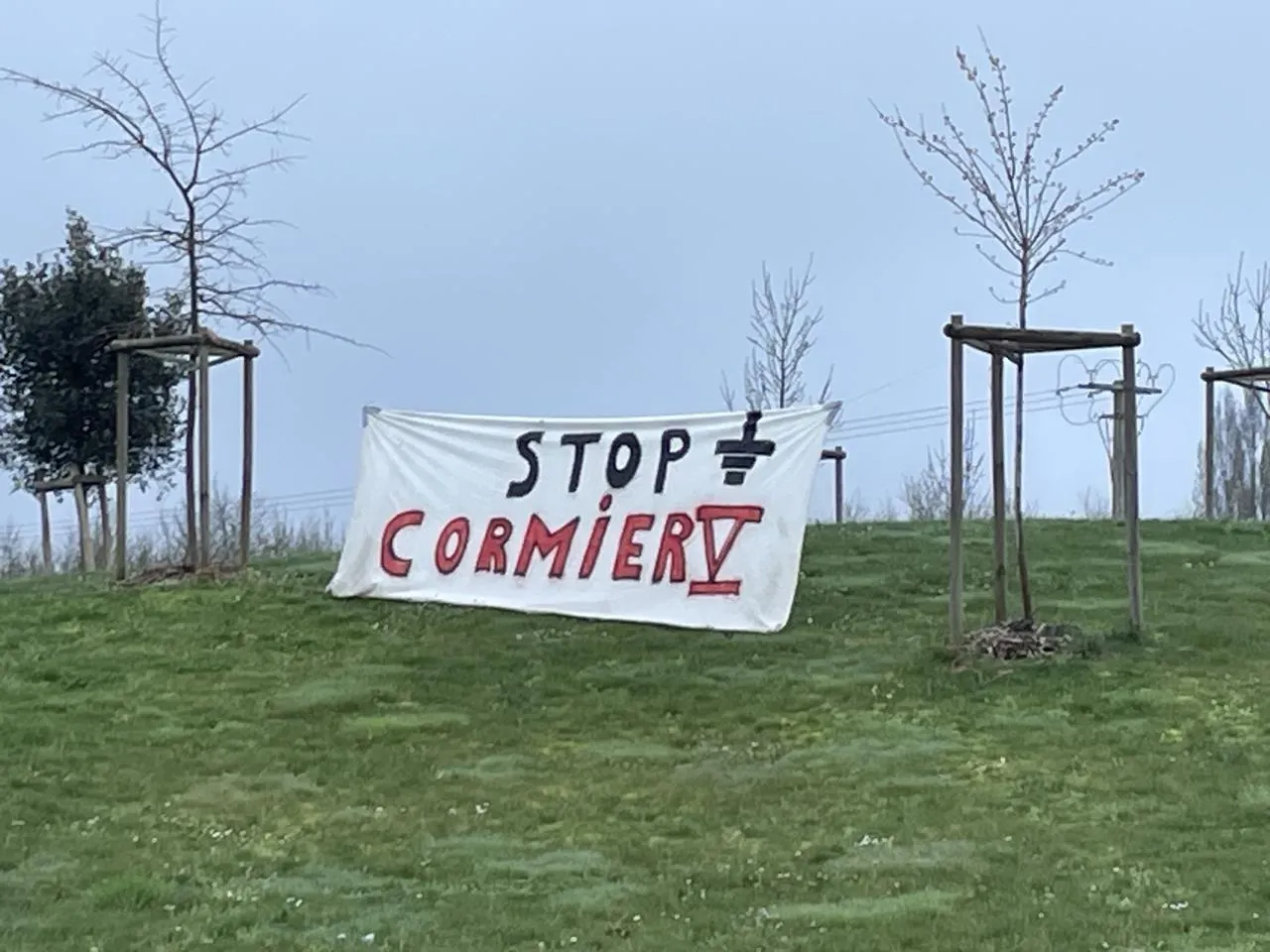 Ce lundi 9 mars 2026, un collectif d’organisations a installé plusieurs banderoles à proximité de la zone d’activités du Cormier, à Cholet (Maine-et-Loire). Elles réclament l’abandon du projet de zone d’activités de Clénay, prévue sur 69 hectares, en face de celle du Cormier, à horizon 2027.