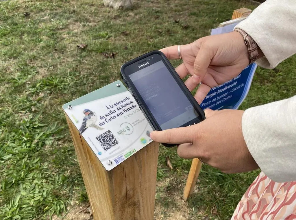 Des bornes biodiversité, à découvrir avec son téléphone, sont placées le long de cinq circuits de randonnée du Pays fléchois. © Ouest-France