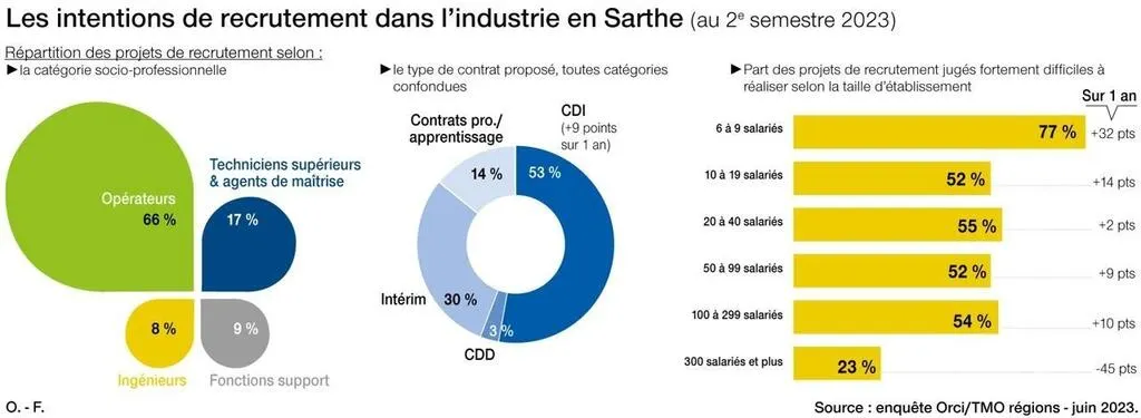 L’Orci, Observatoire régional des compétences industrielles, vient de publier son étude sur les intentions de recrutement des entreprises de l’inter-industrie en Sarthe, au second semestre 2023. Voici ce qu’il faut en retenir.