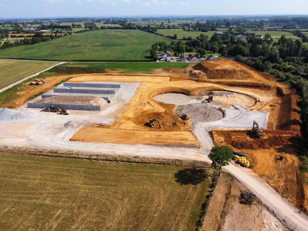 Un collectif de seize agriculteurs s’est lancé dans la construction d’une unité de méthanisation au nord du Mans, à Montbizot (Sarthe). Le chantier a démarré au mois de mai 2023. © AgriMontbigaz.