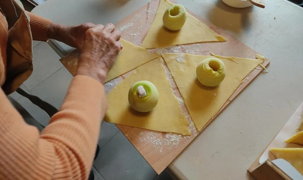 Les Amis du moulin et du four de Fillé préfèrent réaliser une pâte triangulaire pour les bourdons aux pommes. © AM2F