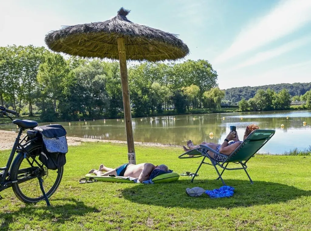 À Marçon, le samedi 2 septembre 2023, les vacanciers tardifs sont heureux, au bord de l’eau. Le début du mois en Sarthe est ensoleillé et très chaud. © Photo Le Maine Libre Yvon LOUE