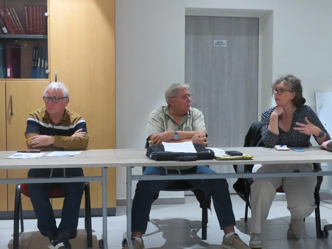 Philippe Bodereau, Daniel Bazille (adjoints) et Corinne Gautier (conseillère municipale), lors du conseil du 16 septembre. © Le Maine Libre