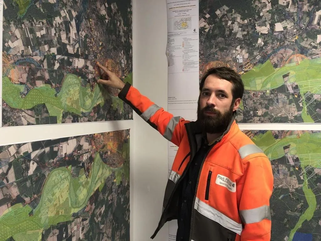 Kévin Yoncourt, chargé de mission énergies renouvelables du Pays fléchois, a travaillé à l’élaboration des cartes, soumises à la concertation qui vient de s’ouvrir à La Flèche (Sarthe). © Ouest-France