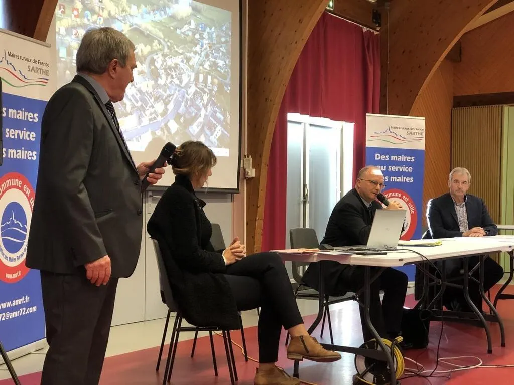 Fercé-sur-Sarthe, samedi 25 novembre 2023. Les maires ruraux ont pu échanger avec le préfet au sujet des zones d’accélération ENR. Sujet sensible dans les villages de notre campagne. © Le Maine Libre