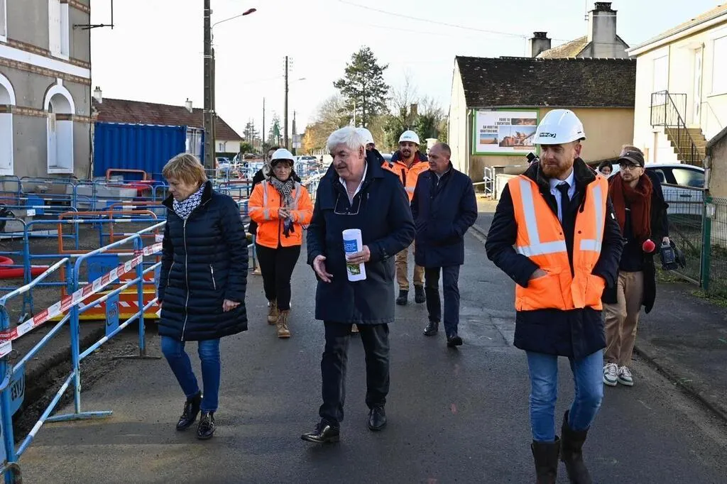 C’était visite de chantier vendredi 6 décembre 2024 à Champagné (Sarthe). Un point d’étape concernant les travaux d’enfouissement des réseaux dans le cadre de la réhabilitation du centre-bourg.