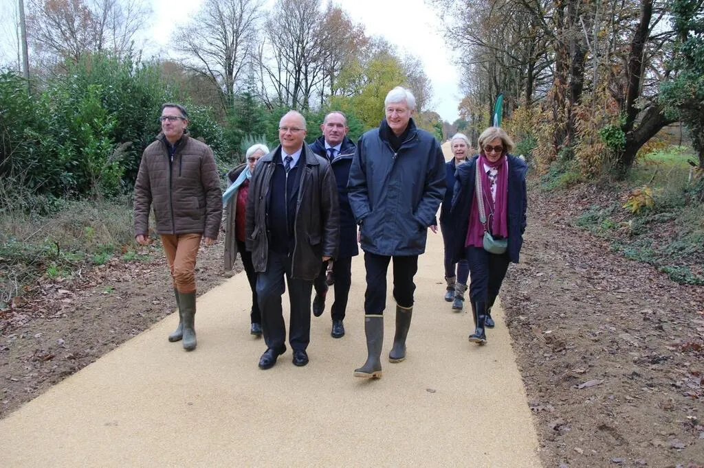 Malgré une petite discontinuité à hauteur de Saint-Jean-du-Bois, où un ouvrage devrait être mis en service au mois de mars 2025, les représentants du Département inaugurent un premier tronçon de 13 kilomètres de voie verte entre La Suze-sur-Sarthe et La Flèche. © Ouest-France