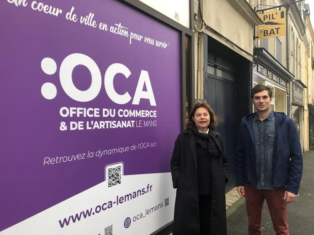 Diminution des friches, nouveaux commerces, référencement des commerçants du centre-ville. Le commerce évolue au Mans (Sarthe). Blandine Affagard, déléguée au développement et à l’attractivité commerciale et Harold Lemaitre, manager de centre-ville font le point sur l’association Office du commerce et de l’artisanat du Mans (OCA),