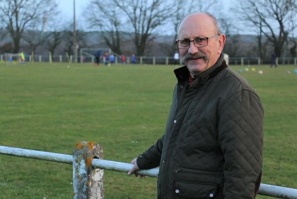 Jacky Marchand, maire de Trangé (Sarthe), devant le terrain de football que la municipalité souhaite délocaliser afin d’y construire une quarantaine de logements. © Ouest-France