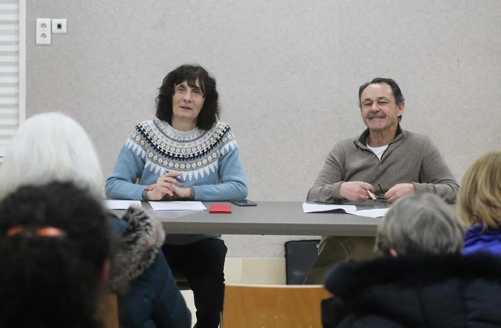 Martine Hurel et Ronan d’Hervé lors de l’assemblée générale de l’association Aime, vendredi 24 janvier 2025, à Sablé-sur-Sarthe. © Ouest-France