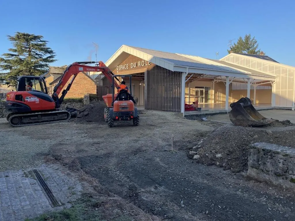 Les travaux d’aménagements extérieurs de l’Espace du Rôle à Solesmes ont débuté et devraient durer deux mois. © Ouest-France