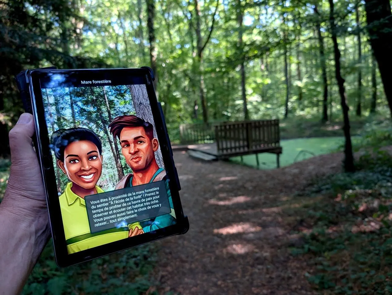 Tout au long du parcours A l’école de la forêt, le soutien numérique apporte des informations passionnantes. © Ouest-France
