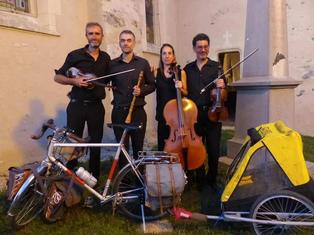 Enfin, ce n’est pas trop le répertoire de Marjolaine Cambon, Jean-Marc Haddad, Pierre Nimylowycz et Jon Olaberria. Leur rayon à ces quatre artistes, c’est plutôt la musique baroque et classique, mais qu’ils mêlent à une aventure à vélo.