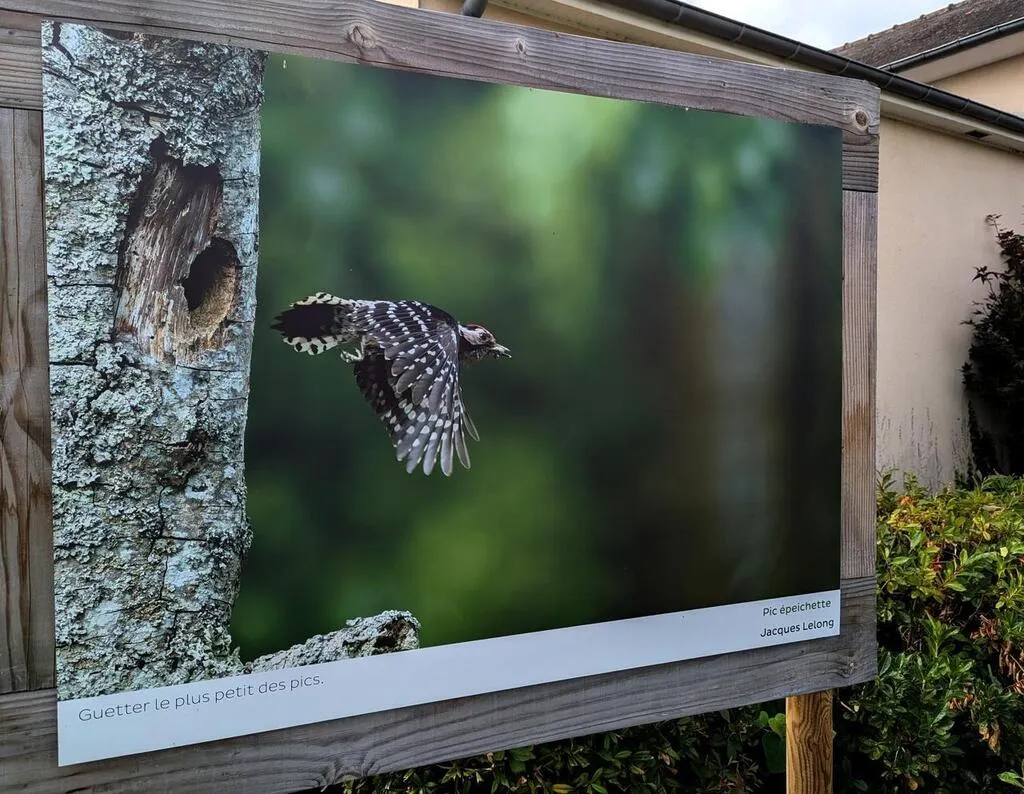 L’exposition photographique et les animations de Bercé, naturellement se poursuivent cet été, à Marigné-Laillé (Sarthe). Sur les vingt-six clichés exposés dans le centre bourg, celle de Jacques Lelong attire l’œil. Il nous raconte l’histoire de sa photographie du pic épeichette.