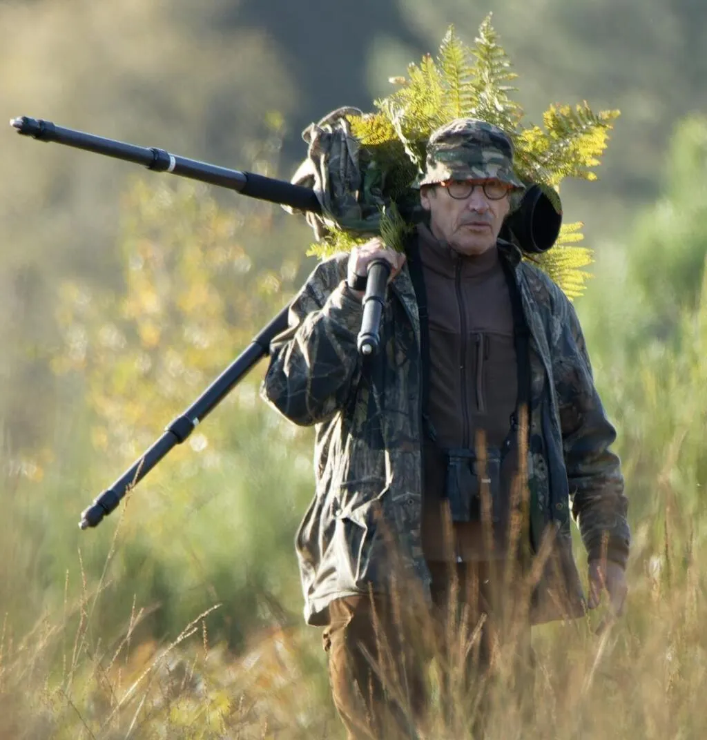 Jacques Lelong en tenue d'affut. Jacques Lelong