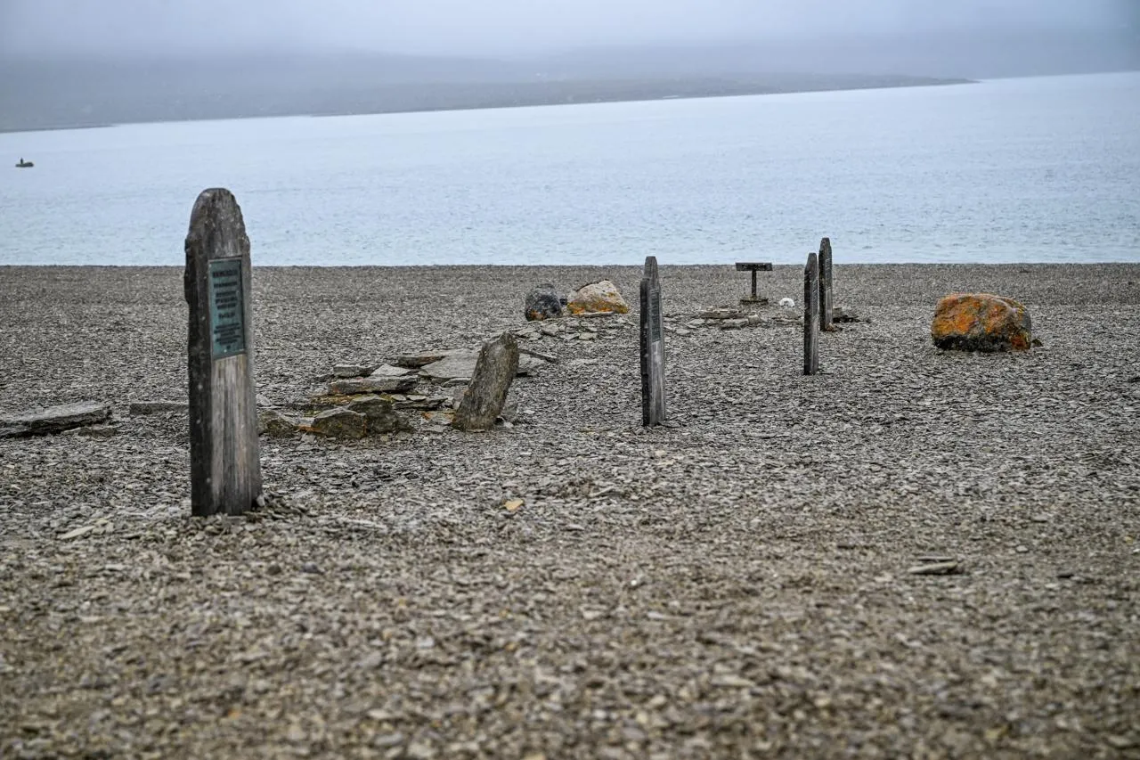 Des pierres tombales de l’expédition Franklin sont visibles sur l’île Beechey, à Nunavut au Canada. © Photo : Michael Runkel / Robert Harding RF / via AFP