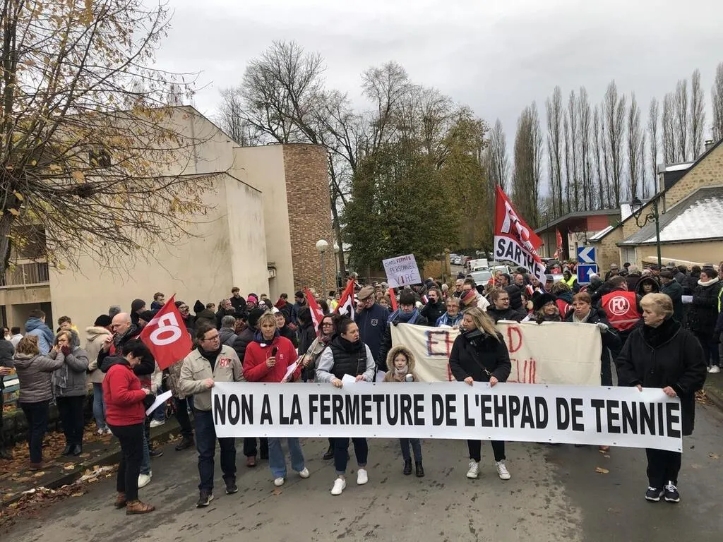 Après l’annonce par l’Agence régionale de santé et du Département de la fermeture de l’Ehpad de Tennie (Sarthe), une marche de soutien a réuni près de 300 personnes dont des soignants, des familles, des citoyens et des élus. Une dernière annonce a soulevé de colère l’assemblée.