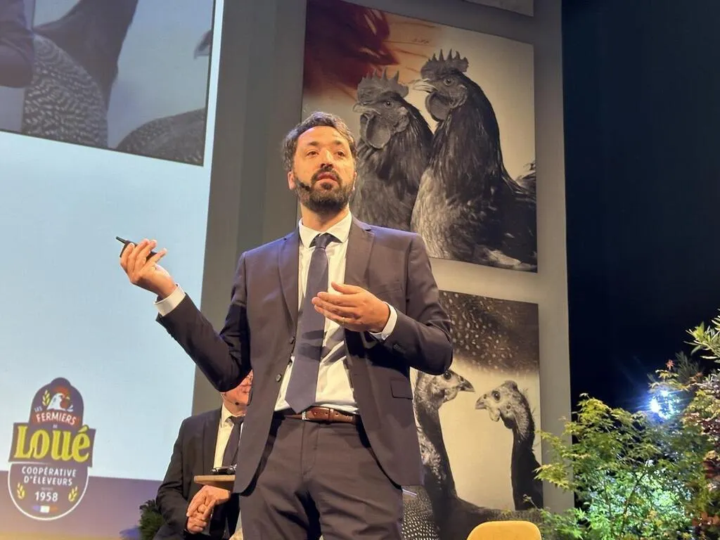 Le nouveau directeur des Fermiers de Loué, Erwan de la Fouchardière qui a pris le relais de son père, Yves, à la tête de la coopérative agricole, a animé l’assemblée générale. © Ouest-France