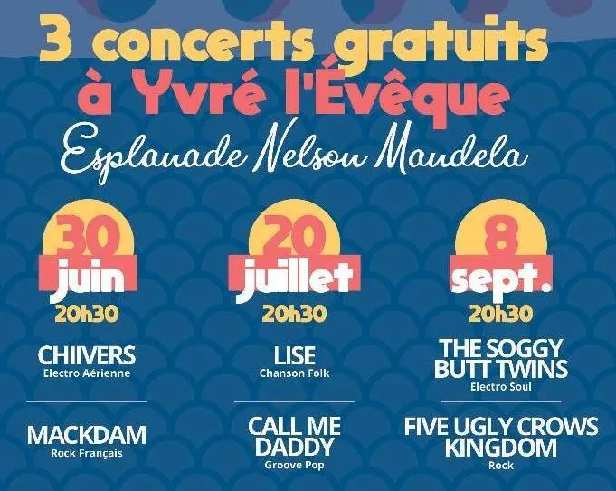 Première édition d'un festival de musique amateur. Trois dates 30 juin - 20 juillet - 8 septembre. Deux groupes par dates. esplanade nelson Mandela. Début des concerts à 20h30. Gratuit. Buvette sur place.