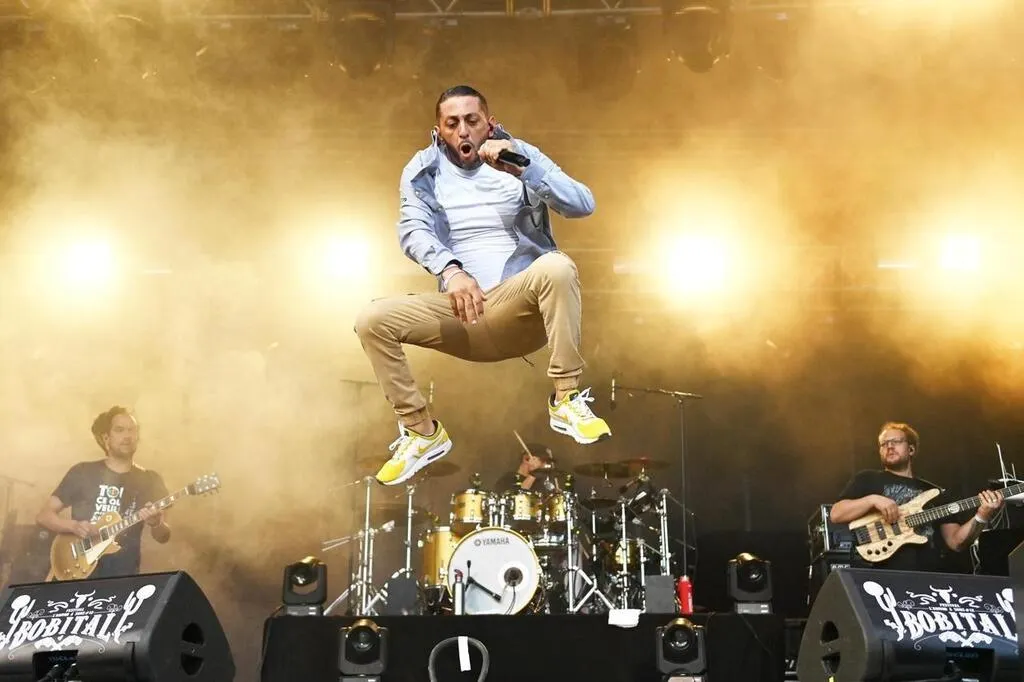 Le groupe de reggae Dub Inc et son chanteur Hakim « Bouchkour » Meridja, ici au festival de Bobital (Côtes-d’Armor) en 2022. © Xavier Bonny / Archives Ouest-France