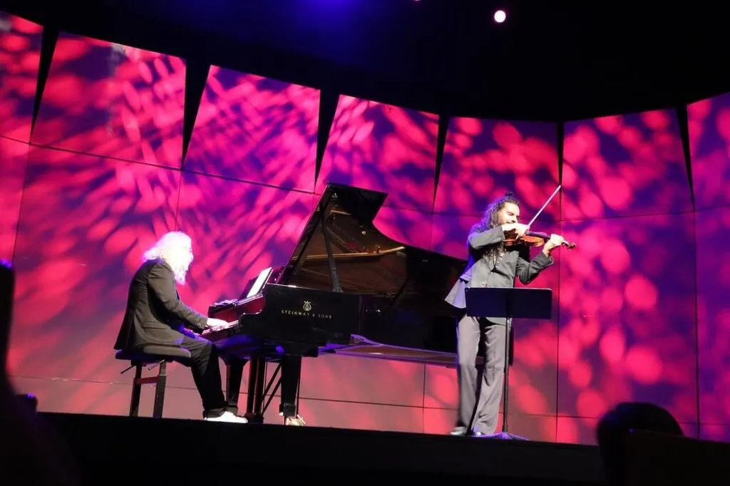 La prestation d’Yvan Cassar et Nemanja Radulovic, aux frontières du baroque, a enthousiasmé le public présent à la scène Joël Le Theule, samedi 24 août 2024. © Ouest-France