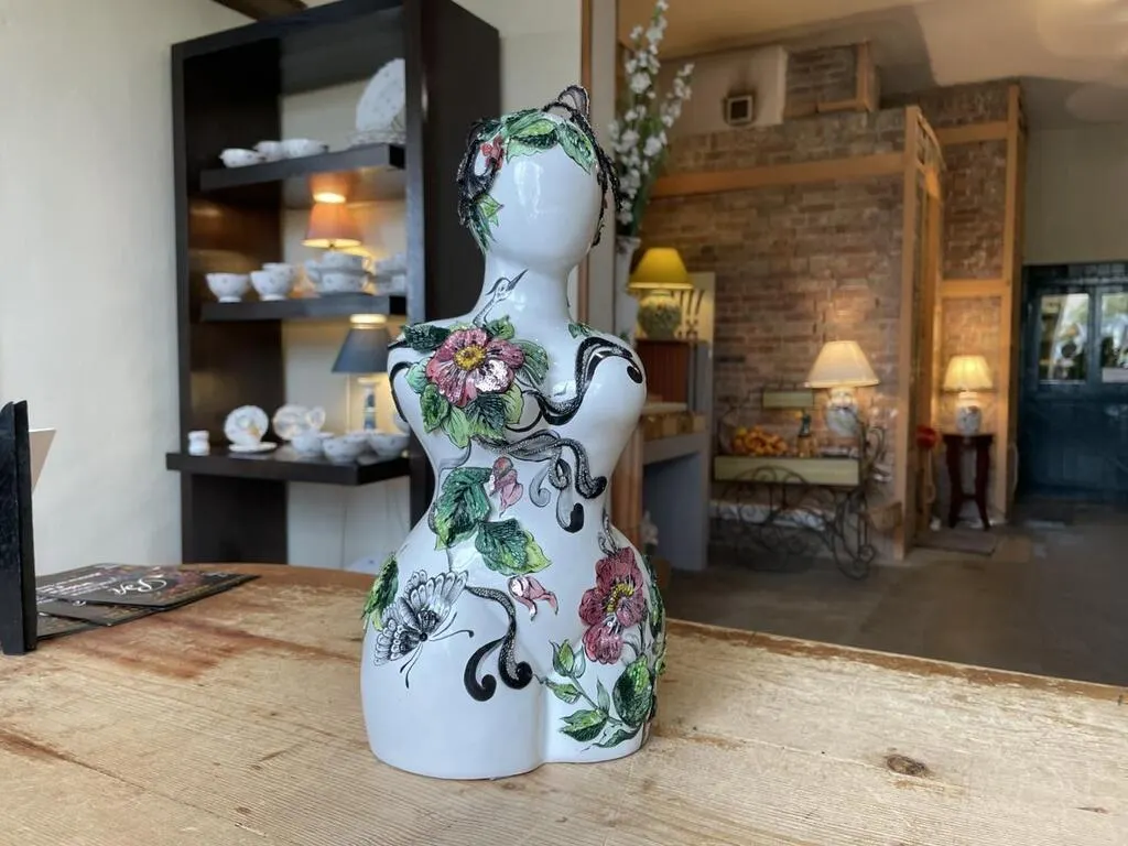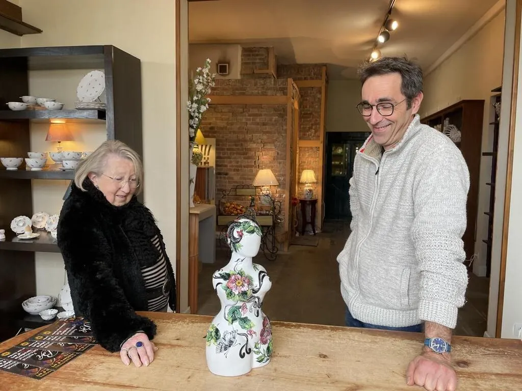 Réalisée par Michèle Rabard (à gauche) et Stéphane Deschang (à droite), la Baigneuse sera exposée au magasin de la faïencerie d’art de Malicorne, rue Bernard-Palissy. © Photo : Le Maine Libre