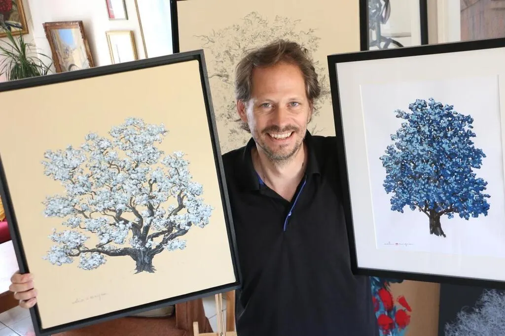 Pour le festival Plein champ, Mathieu Maignan, qui excelle dans l’art de dessiner et peindre des arbres, va réaliser une composition inspirée par le réchauffement climatique et la nature en souffrance. © Ouest-France