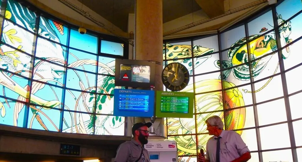 Le 25 juin 2025, ’artiste de street art Stom500 a été vivement applaudi pour ses vitrophanies créées pour les deux gares mancelles, à l’occasion de Plein Champ, le festival d’arts urbains situé au parc du Gué de Maulny, au Mans (Sarthe).