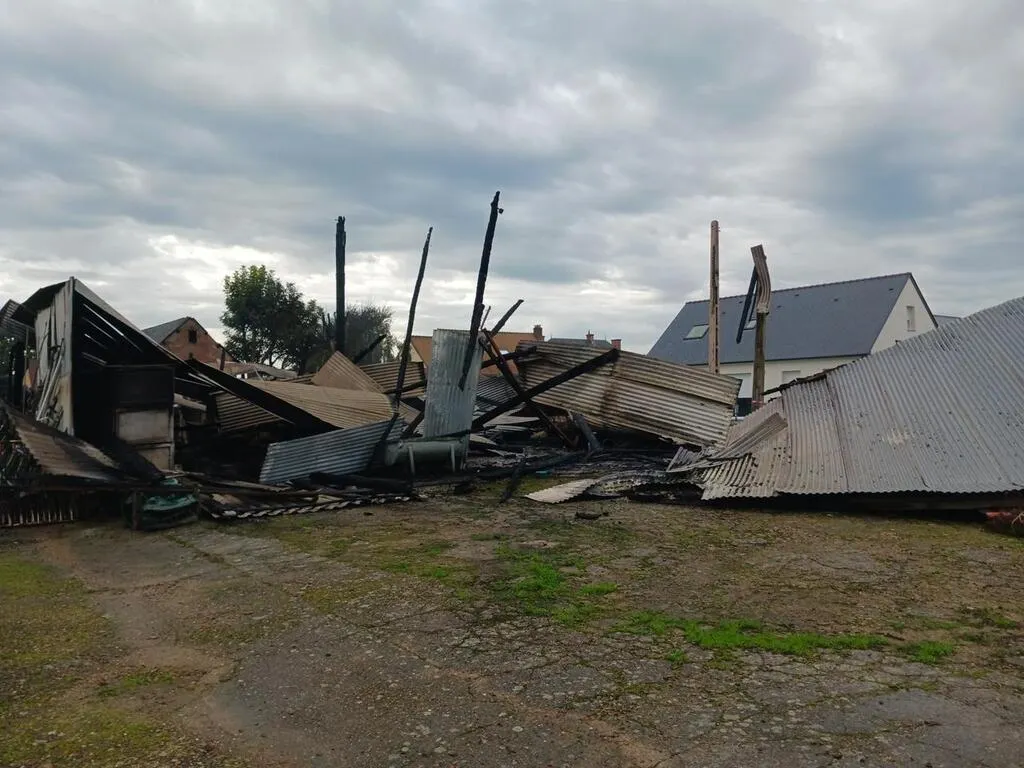 Feu de bâtiment dans le Sud Sarthe : des hangars complètement détruits... |