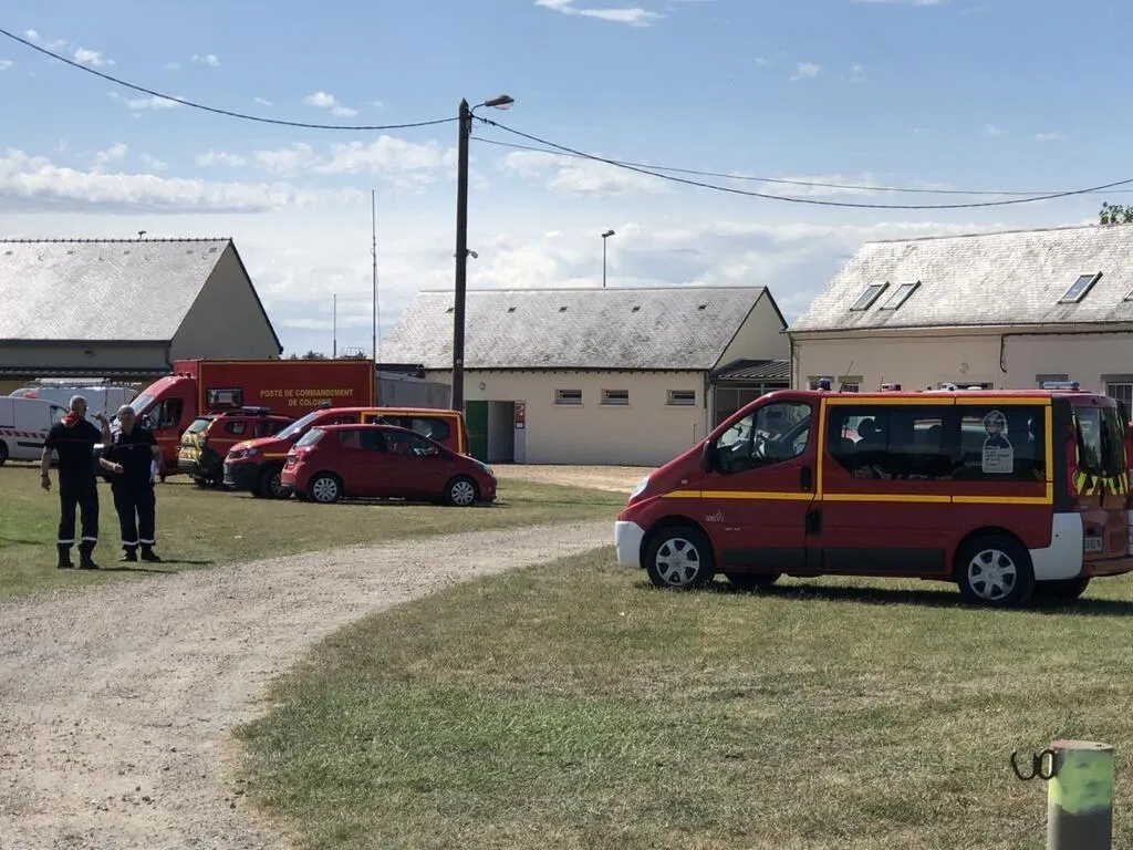 Les pompiers ont installé leur base arrière au stade de La Pépinière à la Flèche. © Le Maine Libre
