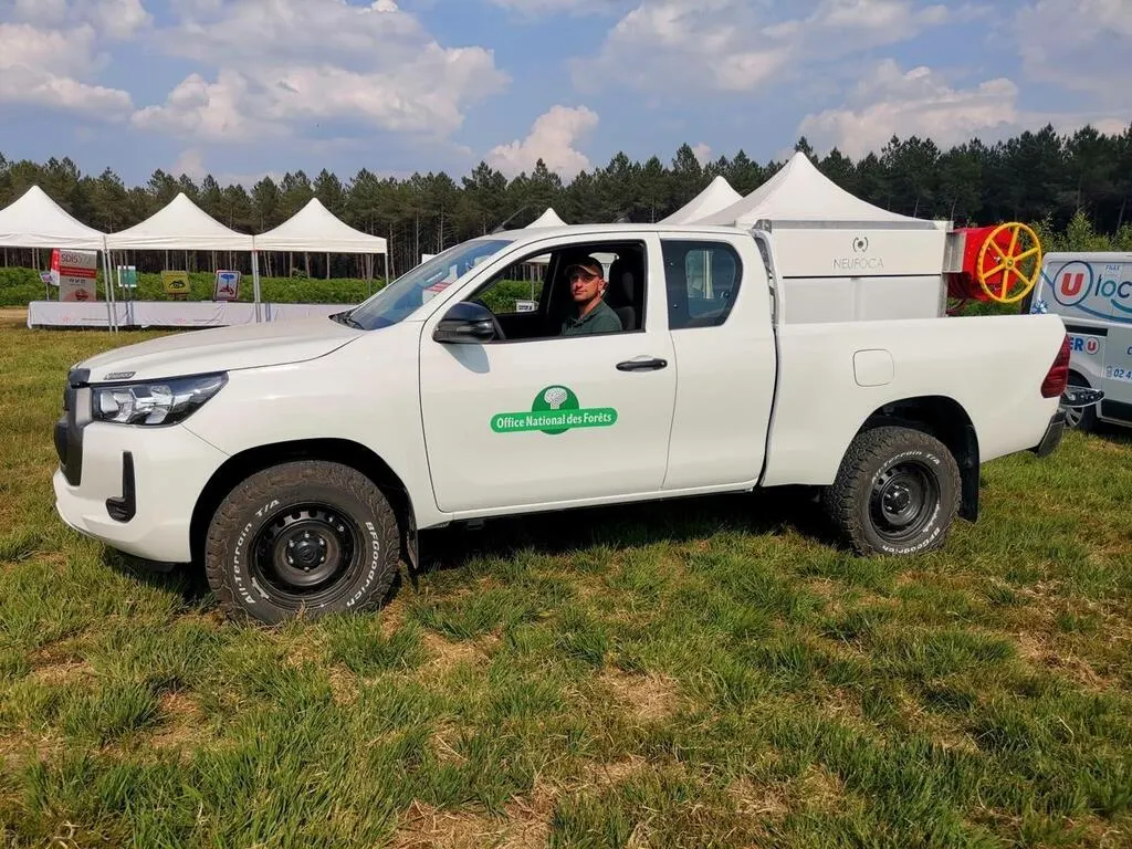 Une démonstration du nouveau camion-citerne feux de forêt super a été faite devant des élus et pompiers de la Sarthe jeudi 15 juin 2023. © Ouest-France