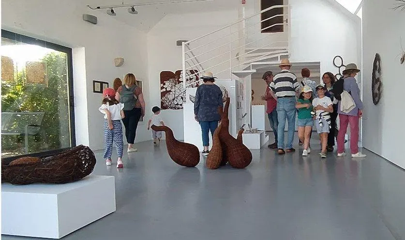 Opus#5 a attiré environ 1 500 personnes, dimanche, à MoulinSart. Un programme varié de musiques, peintures, arts, cirque a drainé le public au centre d’art, notamment l’exposition de Myriam Roux, « Graines de vie et Pollens ». Elle a initié au tressage d’osier. © Alexandra Bouleau