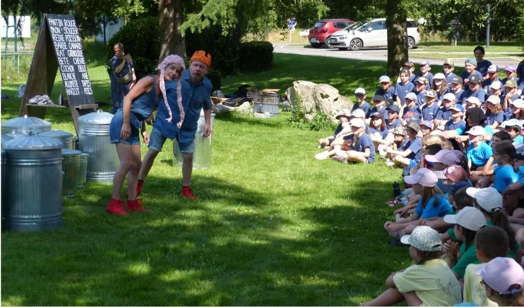 Des maillots, dont le flocage a été réalisé par Fabienne Martineau, responsable enfance, et de couleurs différentes étaient attribués pour chaque centre de loisirs. La Cie « Les Baltringos » avait invité la Cie « Le Chat Fou » qui a présenté un spectacle intitulé « Que le grand cirque te croque » accessible dès l’âge de 3 ans à la Maison du temps libre et la Cie « Tétrofort » qui a raconté 20 contes célèbres en 45 minutes, aidée de 30 poubelles métalliques. « La dimension environnementale et l’attention portée aux ressources vitales sont toujours intégrées dans l’organisation du Festi’Val de Sarthe, avec l’installation de toilettes sèches sur la plaine de l’île MoulinSart » ajoute Élisabeth Moussay.
