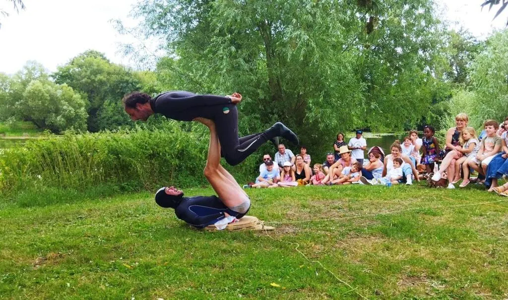 Ils étaient deux sur scène, mais ils ont mis à contribution un public prêt à rire de tout, même de la fin du monde : Florian Massonave et Vivien Hautenauve ont fait rire environ 300 personnes venues, dimanche, à cette première édition de L’île en été.