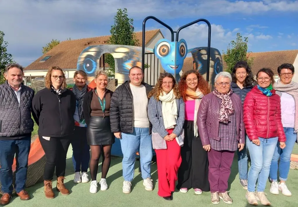 L’équipe pédagogique avec le maire Luc-Marie Faburel. © Le Maine Libre