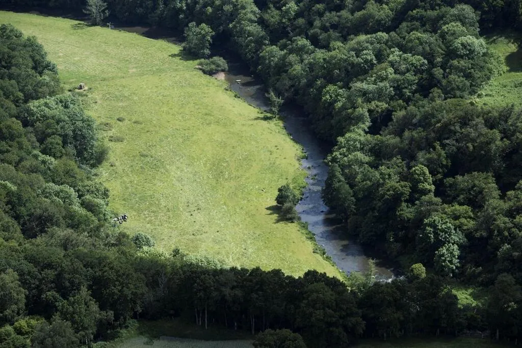 La Sarthe, quitte l’Orne et entre en Mayenne. Ici, elle traverse la commune de Saint-Pierre-des-Nids. © Archives Thomas Brégardis, Ouest-France
