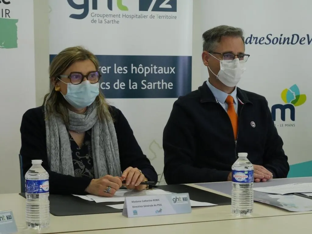 Catherine Robic, directrice générale du Pôle santé Sarthe et Loir du Bailleul et Stephan Domingo, directeur de la délégation territoriale de la Sarthe pour l’Agence régionale de santé (ARS). © Le Maine Libre
