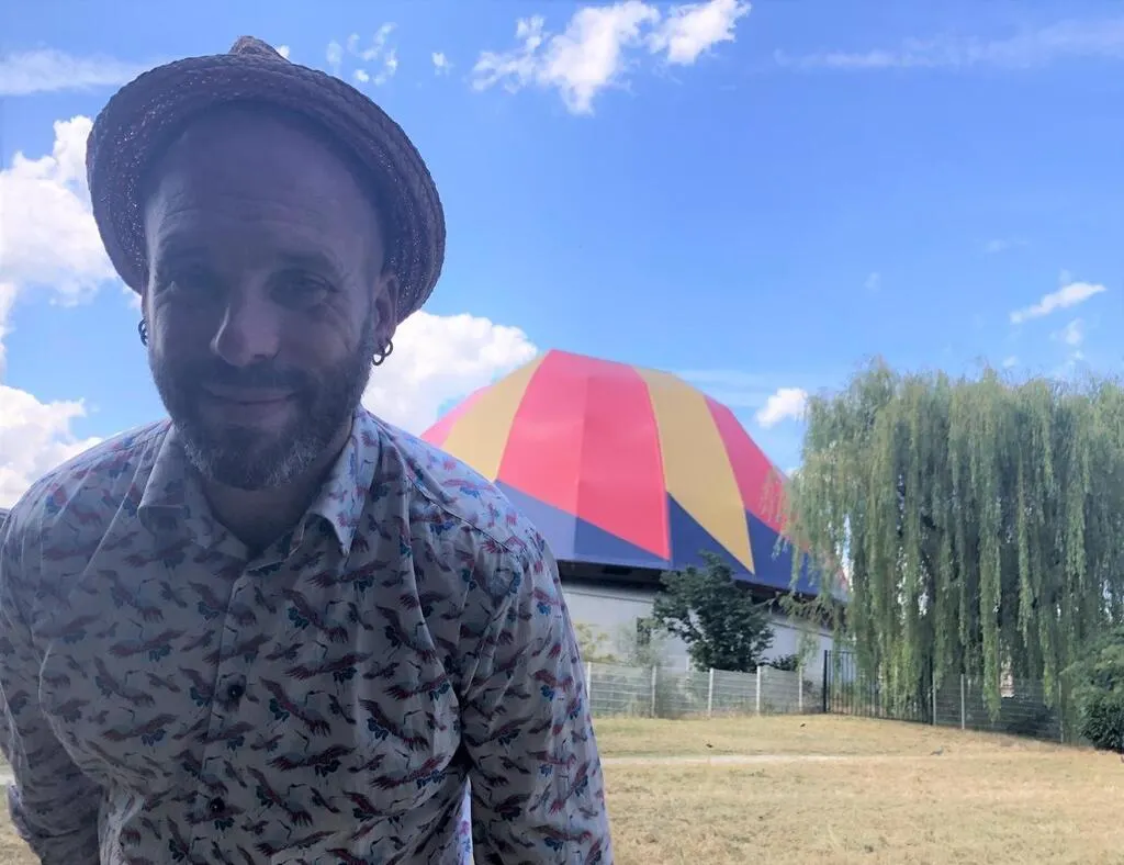 Richard Fournier, directeur du Plongeoir, cité du cirque du Mans (Sarthe), devant le chapiteau permanent, inauguré fin 2022. © Ouest-France