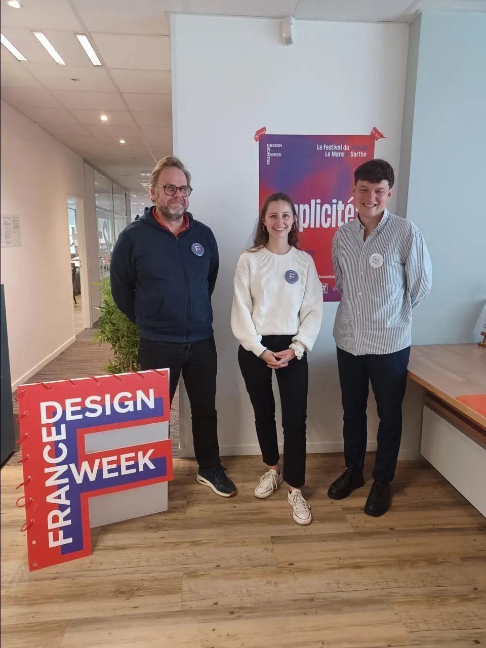 À gauche, Fabien Papin, artisan designer de TOMoRO, studio de création et d’édition de mobiliers sarthois, au centre, Florine Decaen, présidente de l’association Créapolis et webdesigneuse de FD communication et à droite, Corentin Piou, photographe et fondateur de la Source. © Ouest-France