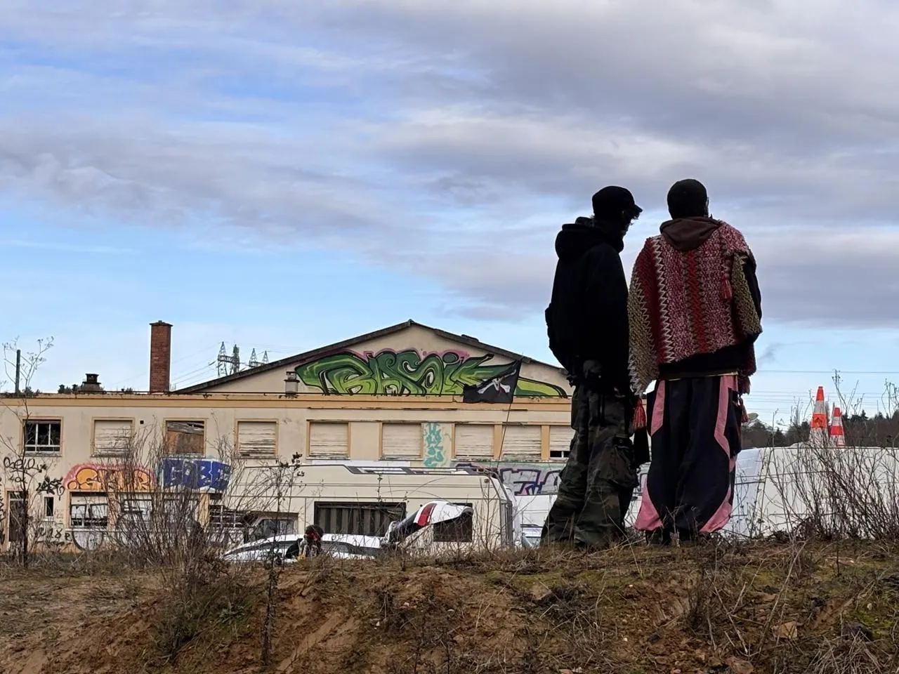 Les teufeurs ont pris possession d’un terrain où se trouve un entrepôt désaffecté, près du rond-point de Béner, aux portes du Mans. © Ouest-France