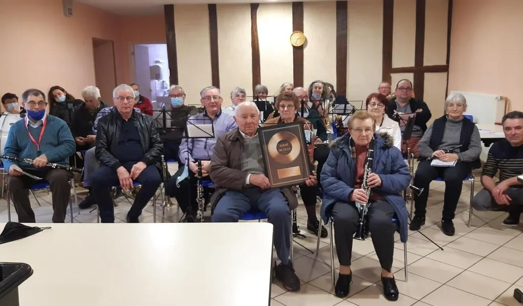 Àl’issue d’un mini-concert, dernièrement à la salle polyvalente, les 24 membres de l’harmonie municipale ont fêté dignement, l’un des leurs : André Nicolas, 90 ans, tambour depuis l’âge de 15 ans et qui compte 75 années de présence à l’harmonie. « Nous lui avons remis un disque d’or pour ses 75 années au sein de l’harmonie, et un bouquet de fleurs à son épouse Odile, également musicienne », explique Éveline Frigo, membre de l’harmonie.