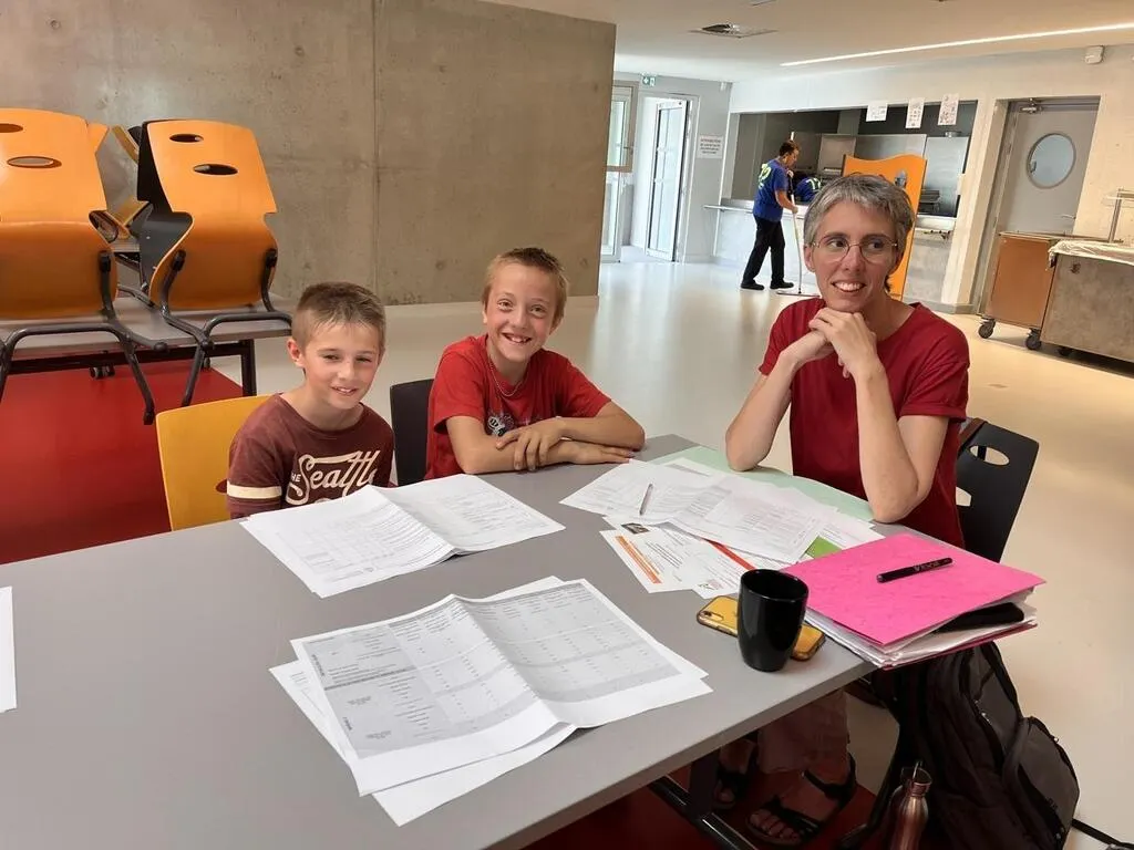 Théo et Mathéo, élèves de 6e et éco-délégués, très impliqués dans le projet de l’assiette unique et dans la réduction du gaspillage alimentaire, avec Elsa Lévéder de la chambre d’agriculture. © Ouest-France