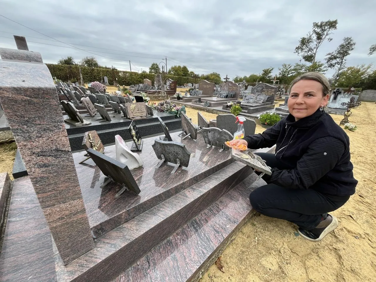 Un nettoyage complet des tombes ainsi que de tous les ornements : dans la Sarthe, Céline Chamayou a créé son activité de gazonnière. Depuis un an et demi, elle arpente les cimetières, un kit de nettoyage à la main.