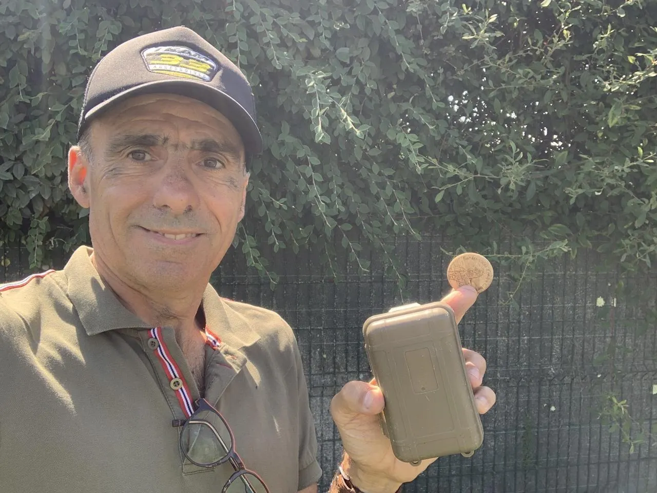 Je complète la position GPS de la cinquième cachette avec les chiffres que j’ai trouvés aux énigmes. Ce n’est qu’une fois sur place, et si je la trouve, que je saurai si je les ai bien résolues. Je contourne tout le village et fini par trouver la cache finale. Bingo ! Je trouve aussi le coffret, dans lequel se trouve un souvenir que l’on peut garder, Le Graal !